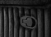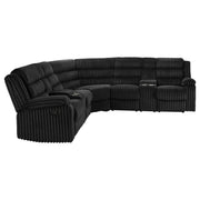 Unwind in sculpted comfort with this reclining sectional sofa, where bold texture meets irresistible softness. Wrapped in wide-wale corduroy upholstery, its velvety ribbed finish creates visual depth and an inviting touch. Deep channel tufting enhances the plush profile, while dual consoles offer lift-top storage and stainless steel cup holders. With pocket coil seating beneath every cushion, this sectional is a luxurious retreat for everyday lounging and connection. Key Features: • Reclining sectional sofa with sculpted profile and ribbed channel tufting throughout each panel • Chocolate brown wide-wale corduroy upholstery offers soft velvety texture and elevated visual interest • Two reclining seats provide effortless comfort with smooth manual motion functionality • Pocket coil seating ensures enduring structure, bounce, and all-day supportive comfort • Two center consoles with lift-top storage and removable stainless steel cup holders included • Reinforced with soft fabric, foam cushioning, and sturdy metal framework for lasting use