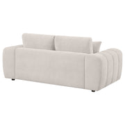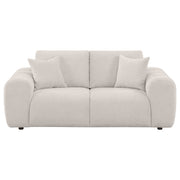 A captivating blend of plush curves and bold modern design, this loveseat exudes inviting comfort. A sculptural silhouette with oversized arms and deep foam cushions creates a relaxing escape. Upholstered in ultra-soft chenille and built with solid rubberwood and engineered wood, it delivers enduring support and style. Perfect for compact living rooms, cozy corners, or modern lounge areas in need of a stylish and comfortable seat. Key Features: • Loveseat features oversized arms and deep seats for sculptural, plush modern comfort • Burnt orange chenille fabric brings warm texture and cozy visual softness to the frame • Sculpted channel detailing along the arms enhances the bold contemporary silhouette • Two accent pillows provide added comfort and cohesive styling with the overall design • Frame includes rubberwood, plywood, and engineered wood for durable support • Thick foam cushions offer sink-in relaxation perfect for lounging or entertaining