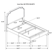 This bed is the perfect spot for sleep and relaxation. It's an essential component that makes an instant impression and brings effortless style to your bedroom. The artfully shaped high headboard creates its own statement, reminiscent of Art Deco glamor. The matte metallic-hued finish works with any contemporary design scheme. Relax and enjoy every night, knowing your sleep will look and feel as good as the rest of your day. Key Features: • Upholstered bed in beige fabric • Sophisticated headboard profile with individually driven antique brass nailhead trim • Plywood and MDF frame • Requires box spring • Available in beige and grey fabric