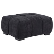 Add versatility and comfort to your seating area with this plush, mid-century inspired ottoman. Its soft, neutral upholstery and subtle grid tufting bring depth and texture to your décor, while a sturdy frame ensures lasting durability. Ideal as a footrest, extra seat, or even a makeshift coffee table. It adapts effortlessly to your needs. This ottoman’s timeless character and flexibility make it a cherished accent piece in any room. Key Features: • Ottoman in camel fabric showcases sculptural volume and plush vertical grid tufting • Waterfall-style cushioning flows across seat and sides for continuous softness • Layered foam construction provides comfort and structure for seating or lounging • Fully upholstered in smooth fabric for a cohesive, tailored modern finish • Low-profile black feet support the soft form while adding subtle contrast • Versatile as a footrest, coffee table, or modular companion to matching sectional