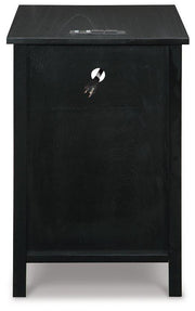 Add big character to a small space with this chairside end table. With its compact size and strong silhouette, it can go anywhere and blend easily into the decor. Less is so much more with the Shaker-inspired design and gray wood tone finish. Loaded with form and function, this end table displays accent pieces and stores essentials securely while keeping devices powered up.