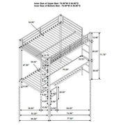 This workstation bunk bed offers streamlined function with a space-conscious footprint. The top full-size bunk includes mesh siding and full-length guardrails for elevated safety, while the lower twin bed offers a cozy sleep space or casual lounging zone. Built-in ladders on both ends provide flexible access, and the integrated full-length desk underneath the upper bunk creates a dedicated workspace. Engineered wood surfaces feature a wood-look laminate veneer for added warmth and durability. Key Features: • Full-over-twin bunk bed in matte black powder-coated metal with integrated modern design • Top full-size bunk includes mesh siding and full guardrails for safe elevated sleeping • Lower twin bed sits beneath a wide built-in desk ideal for study or creative tasks • Desk and step surfaces made from engineered wood with wood-look laminate veneer • Dual ladders on both ends offer easy access and flexible room placement • Crafted from sturdy metal and engineered wood for daily durability and support