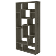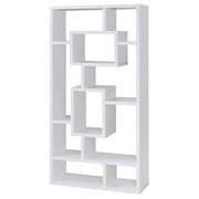 Put your most cherished memories on proud display. This bold bookcase features ten shelves of various sizes to show off your favorite keepsakes. With expert craftsmanship and high-quality materials, it provides safe, sturdy storage. Its cool, contemporary silhouette adds artsy appeal to a room with its striking, geometric shapes. This bookcase is available in white, cappuccino, or weathered grey for a variety of options to fit any decor. Key Features: • Geometric ten-shelf bookcase in white for modern display and organization • Asymmetrical shelving accommodates books, art, and everyday items • Engineered wood core with scratch-resistant laminate veneer • Vertical structure maximizes display while conserving floor space • White finish offers a versatile base for color styling or neutral tones • Includes tip-over restraint hardware for safe wall mounting