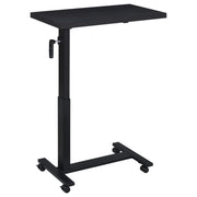 Transform your bedroom into a functional retreat with this height-adjustable C-table, designed specifically for use while reclining in bed. The 28-inch wide wood-inspired top offers ample space for working, dining, or reading. Featuring a smooth hand-crank mechanism, the table adjusts from 27 to 39 inches in height for personalized comfort. Its heavy-duty steel base, finished in a matte black powder coat, ensures durability and stability, making it the perfect bedside companion.