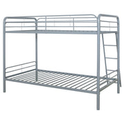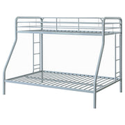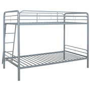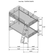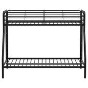 Maximize sleeping space with this modern metal bunk bed, designed for strength, safety, and everyday functionality. Its powder-coated glossy finish enhances the sleek silhouette, while full-length guardrails on the top bunk ensure secure rest. A built-in ladder provides stable access, integrated directly into the frame for a clean look and compact footprint. With metal slat support for both sleeping surfaces, this bunk bed eliminates the need for foundations and suits shared rooms with style and durability. Key Features: • Twin-over-twin bunk bed in glossy black powder-coated finish with clean, modern lines • Top bunk includes full-length guardrails for added safety and secure sleeping space • Angled built-in ladder allows easy access to upper bunk with a compact footprint • Metal slat system eliminates the need for a box spring or additional foundation • Space-saving vertical design ideal for shared kids’ rooms, dorms, or sleepover setups • Crafted from durable metal for everyday strength and long-lasting performance