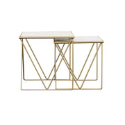 A perfect fusion of modern elegance and timeless luxury, this two-piece nesting table set brings a sophisticated touch to any space. The rectangular white marble tops exude refined beauty, while the sleek gold-finished iron bases feature angled, open-frame designs for a light and airy aesthetic. Whether stacked together to save space or used separately for added surface area, these tables offer versatility and style. Ideal for contemporary, glam, and classic interiors, this handcrafted nesting table set elevates any living room, bedroom, or lounge area with its opulent materials and geometric design. Key Features: • Genuine white marble tabletops add a luxurious, timeless touch • Sleek gold-finished iron base with an open geometric design • Space-saving nesting function allows for versatile arrangement • Use together or separately to enhance different areas of a room • Perfect for contemporary, glam, and modern interiors • Handcrafted design ensures elegance and durability
