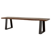 Bring a touch of organic beauty and modern edge to your dining space with this solid sheesham wood dining bench. Featuring a live edge seat, each piece showcases unique natural grain variations for a one-of-a-kind look. The black powder-coated metal base provides sturdy support with a sleek, angular design that enhances its contemporary appeal. Perfect for seating two to three guests, this bench is a versatile addition to rustic, industrial, or modern dining settings. Key Features: • Dining bench with a solid sheesham wood seat for natural beauty and durability • Live edge design highlights organic wood grain variations for a unique look • Sturdy black powder-coated metal base adds an industrial modern touch • Sleek angular legs provide stability and contemporary visual contrast • Spacious 70-inch length comfortably seats two to three people for dining • Versatile design complements rustic, industrial, and modern interiors