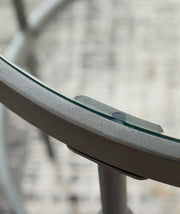 - Inset tempered glass tabletops