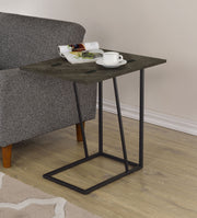 This versatile C-table combines functionality and sleek design, perfect for modern living spaces. Crafted with an engineered wood top featuring a scratch-resistant rustic grey laminate veneer, it offers durability and style. The top folds out, providing expanded surface area when needed. Supported by a sturdy metal base with a sandy black powder coated finish, it blends practicality with elegance. Its slim profile allows it to slide easily under sofas or chairs, making it an ideal space-saving solution. Key Features: • C-table with expandable top offers flexible surface space for various uses • Rustic grey laminate veneer on engineered wood ensures long-lasting durability • Sandy black powder-coated metal base adds stability and modern elegance • Slim profile slides easily under furniture for efficient use of space • Scratch-resistant top maintains clean, smooth surface in busy areas • Modern design fits seamlessly in contemporary living rooms or offices