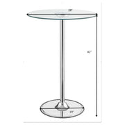 Modern appeal is evident in each and every contour of this contemporary bar table. Its pedestal base boasts a gleaming chrome finish and rounded foot. A petite tempered glass table top is clear, adding to a clean, minimalist presentation. The glass table top is further adorned with transitioning LED lights. Perfect for a compact breakfast nook or a happening home lounge. Key Features: • Contemporary round LED bar table with chrome electroplated pedestal base • Clear tempered glass table top • Bar table features transitioning LED lights: Red, blue, green, magenta, yellow, and aqua (batteries not included) • Metal construction