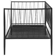 This transitional-style metal daybed combines sleek aesthetics with durable functionality, making it ideal for guest rooms or compact spaces. The design features slim, vertical metal slats with an angled backrest for a subtle modern flair. Welded metal construction ensures strength and stability, while the powder-coated matte black finish resists wear and adds sophistication. The integrated metal slatted platform provides dependable mattress support without requiring a box spring, emphasizing its minimalist appeal.