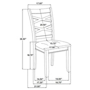 This five-piece dining set invites connection with timeless charm and everyday warmth. The round table, finished in rich dark brown, provides an intimate setting for shared meals and easy conversation. Four coordinating chairs feature gracefully curved double cross-backs and plush light tan upholstered seats that offer gentle support. Crafted from solid rubberwood, mango veneer, and soft-touch fabric, this set brings cozy elegance to kitchens, breakfast nooks, or dining spaces where comfort meets classic design. Key Features: • Five-piece dining set with round table and four cross-back upholstered dining chairs • Dark brown wood finish offers depth and warmth with classic appeal • Chairs feature gently curved double cross-backs for style and support • Light tan fabric seats are foam cushioned for comfortable daily dining • Crafted from solid rubberwood, mango veneer, engineered wood, and fabric • Perfect for breakfast nooks, kitchens, or small dining spaces with timeless style