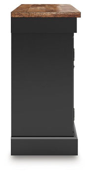- Top with butcher block veneer pattern in deep brown wood tone finish