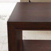 Add effortless style and architectural appeal to your living room with the Waterfall rectangular coffee table with casters. Featuring a timeless silhouette defined by clean lines and simple geometric shapes, this table is distinguished by its striking waterfall edge and open shelf design. Use alone or pair it with the coordinating accent table for a tiered look and additional surface area. Convenient casters allow for easy movement and optimal placement as you entertain guests. This Waterfall coffee table is well-crafted from solid rubberwood with oak veneers and features a rich walnut brown finish for lasting beauty.