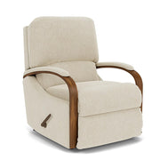The Woodlawn recliner spotlights a beautifully curved Valencia-finished arm topped off with a soft upholstered arm cap. The comfort of the fully padded footrest, divided back cushions, and refined scaling make Woodlawn a great recliner for any setting. Rock back and forth while relaxing, or effortlessly recline at multiple angles from an upright to a fully reclined position.