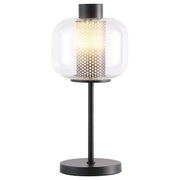 Steeped in vintage inspirations, this modern industrial table lamp is a charming choice for your nightstand or side table. Inside, a 9-watt LED bulb ensures energy efficiency and bright illumination. A metal mesh column in chic black creates depth and texture. It's surrounded with a clear glass shade that adds a chic layered effect. A simple round base and slim post complete the look. Key Features: • 9-watt LED bulb ensures energy efficiency and bright illumination • Metal mesh column in chic black creates depth and texture • Clear glass shade adds a chic layered effect • Simple round base and slim post complete the look • Vintage-inspired modern industrial design for nightstand or side table