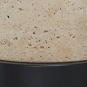 • Made of beige travertine and metal with a metal shade