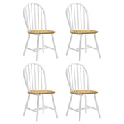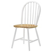 A timeless design meets everyday functionality with this classic Windsor-style side chair. Crafted from a blend of solid rubberwood and engineered wood, it offers durability and charm for casual dining spaces. The arched spindle backrest provides gentle support, while the contoured seat ensures comfort. A two-tone white and natural brown finish enhances its traditional appeal, making it a versatile addition to farmhouse, cottage, or transitional dining areas. Key Features: • Windsor-style side chair with a timeless arched spindle backrest • White and natural brown finish enhances classic farmhouse appeal • Crafted from solid rubberwood and engineered wood for durability • Contoured seat provides enhanced comfort for everyday dining • Sturdy legs with stretchers ensure long-lasting stability and support • Versatile design complements cottage, farmhouse, and transitional decor