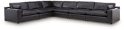 Catering to your contemporary lifestyle, this sectional is a handsome marriage of masculine and feminine sensibilities. Feather-fiber cushions and bolster pillows soften the look of its chunky, linear silhouette. A warmly hued combination of leather and faux leather upholstery levels up the affordable luxury. And you'll never run out of ways to stage this seating arrangement—each piece is fully finished on all sides and capable of standing solo. Urban sophistication has never been more versatile.