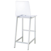 Elevate your space with this chic acrylic chair, designed to bring a modern and airy feel to any setting. The transparent seat offers a unique, minimalist look that blends seamlessly with various decor styles, while providing a comfortable perch for casual seating. Supported by a sleek chrome base, this stool includes a convenient footrest and adjustable height feature to ensure the perfect fit. Its durable acrylic construction is easy to clean, making it as practical as it is stylish. Ideal for contemporary kitchens or home bars, this stool adds a touch of sophistication without overwhelming the room. Key Features: • Modern acrylic bar chair perfect for elevating wet bar or recreation room aesthetics • Futuristic design highlighted by a brilliant chrome finish for radiant elegance • Features sturdy back and foot supports for enhanced comfort • Perfect for home bars, kitchen islands, or casual dining areas • Constructed from high-quality acrylic, ensuring both durability and style