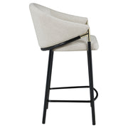 This pair of two stools offer a Hollywood regency look. With a tall and sleek design, the legs come in a glossy black finish that lends to many color palettes and offers a handsome look. Each stool has a cushioned seat, wrapped in a linen-like fabric that is soft to the touch. Plus, lean back and relax between sloped arm rests and a curved high back as you sip cocktails and chat with guests. Capping each arm rest is a gold accented piece that adds a glamorous touch. Key Features: • Tall and sleek design with glossy black finish for versatile color palettes and handsome look • Cushioned seat wrapped in linen-like fabric for soft touch and comfort • Sloped arm rests and curved high back for relaxed seating • Gold accented pieces on arm rests for glamorous touch • Hollywood regency look for stylish addition to any room