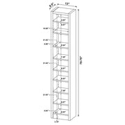 Maximize storage without sacrificing style with this tall, narrow bookcase in a deep cappuccino finish. Designed with a compact footprint, it features nine shelves—six of which are adjustable—to easily accommodate books, décor, or office supplies. Crafted from engineered wood and finished in a durable melamine veneer, this sleek bookcase adds a modern touch to any living room, bedroom, or home office.
