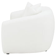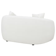 Transform your sophisticated modern living room with this vintage-like contemporary natural loveseat, featuring boucle upholstery that presents an inviting cloud-inspired resting place. Gracefully curved armrests, a single bench cushion, and a tailored backrest complete this retro-inspired look, accented by black legs.