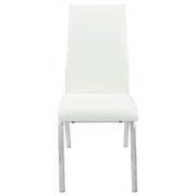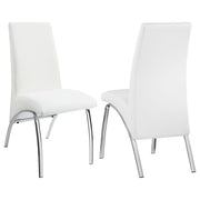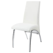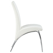 Elevate your dining space with this modern dining chair, featuring sleek white polyurethane upholstery that brings a crisp, clean look to any room. The chair’s gracefully curved backrest and seat offer both style and comfort, making it ideal for long dinners and casual gatherings alike. Supported by sturdy chrome metal legs, this chair has a contemporary flair that adds a polished touch to your dining area. Its minimalist design easily complements modern and contemporary decor styles, creating a versatile seating option for various settings. Enjoy a chic and functional piece that enhances the ambiance of your dining room. Key Features: • Modern dining chair with sleek white polyurethane upholstery • Chrome metal legs provide sturdy support and a polished look • Curved backrest and seat offer comfort and style • Minimalist design complements modern and contemporary decor • Perfect for dining rooms, kitchens, or as extra seating • Easy-to-clean surface for low-maintenance care