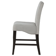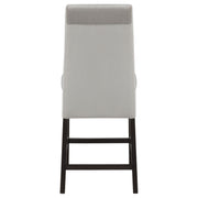 Upgrade your dining space with these elegant counter-height dining chairs. Designed with a classic Parsons silhouette, these chairs feature plush grey velvet upholstery for a soft, luxurious feel. The solid rubberwood frame, finished in deep black, offers durability and a striking contrast. A gently curved seat provides lasting comfort, while a built-in footrest ensures support. Perfectly complementing modern or transitional settings, these chairs add sophistication to any counter-height dining table. Key Features: • Counter-height Parsons chair with a refined and timeless silhouette • Grey velvet upholstery provides a soft, plush, and luxurious feel • Solid rubberwood frame in a deep black finish for durability and style • Gently curved seat enhances comfort for extended dining experiences • Sturdy construction with built-in footrests for added stability and support • Versatile design complements modern and transitional dining spaces
