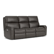 Enjoy a relaxing evening with family and friends with the Rio Power Reclining Sofa with Power Headrests, available in premium leather upholstery. Keep comfy using the power control in either arm, which independently adjusts the recline and headrests. Built-in USB charging ports in either arm mean you don't have to worry about your phone dying as you stream content. Great for gaming or movie marathons, the sofa features divided back cushions that cradle your neck, back and lower lumbar, and inset padded arms that support your forearms. It's an experience built to last with our patented Flexsteel DualFlex Spring System™, which offers a just-right mix of flexibility and firmness as you sit. Choose from over 50 premium leather options to elevate your décor.