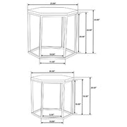 Add a modern geometric touch to your space with this two-piece nesting table set, designed for both functionality and visual appeal. Featuring solid mango wood hexagonal tops, these tables showcase the natural wood grain for a warm, organic look. The sleek black iron frames, crafted in a matching hexagonal silhouette, provide a bold contrast while ensuring durability and stability. Nest them together to save space or use them separately for added surface area. Perfect for living rooms, lounges, or contemporary interiors, these tables blend industrial and modern aesthetics effortlessly. Key Features: • Geometric hexagonal tabletops crafted from solid mango wood • Matte black iron frames add durability with a modern edge • Nesting design allows for space-saving versatility • Sleek, open base enhances an airy, contemporary feel • Perfect for living rooms, lounges, or accent seating areas • Blends modern, industrial, and minimalist aesthetics seamlessly