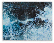 Like waves kissing the shoreline as they crash, this print on glass reminds you of the tide pulling out to sea. Swirling turquoise hues form a mesmerizing image of the ocean with foamy white caps. Perfect for ocean lovers or coastal cottages, this maritime art is sure to make a statement.