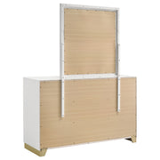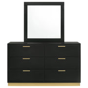 Unveil the essence of minimalism and modern luxury with our sleek six-drawer dresser and matching mirror, a perfect addition to both master and guest bedrooms. The clean lines and Mid-Century Modern flair of the dresser blend seamlessly with its straight handles and matching base, offering spacious storage with a refined aesthetic. Its smooth center glides ensure functionality without compromising on style. The accompanying mirror, framed with the same care and precision, extends the look upward, adding height and elegance to your space. This duo, versatile and sophisticated, pulls together a statement-making ensemble that transcends style trends with enduring simplicity. Key Features: • Six-drawer dresser with Mid-Century Modern design in wood and wood products • Clean lines, sleek elegance with straight drawer handles and matching base • Smooth operation with center drawer glides • Minimalist rectangular mirror with medium-thick border for added elegance • Versatile design, perfect for mounting above dressers or vanities
