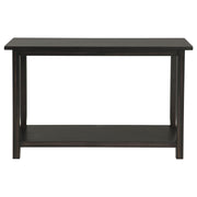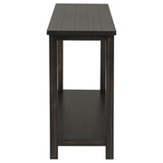 Crafted to complement both entryways and living rooms, this console table showcases a rustic aesthetic and versatile appeal. Fashioned from pine wood and reinforced with engineered wood, its open lower shelf provides ample space for baskets or decorative accents. The slim profile allows easy placement behind a sofa or along a hallway, making it a stylish choice for farmhouse or casual interiors. Enhance your space while keeping essentials close at hand. Key Features: • Introduce rustic charm with this streamlined console table in any setting • Distressed brown finish creates a warm, casually elegant focal point • Rectangular top suits narrow spaces like hallways or under windows • Lower shelf offers extra room for baskets, décor, or daily essentials • Crafted from pine wood and engineered wood for long-term durability • Works beautifully as a sofa table behind seating for a cohesive overall style